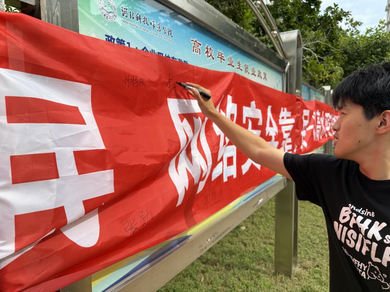 为筑牢校园网络安全防线,宣传网络安全理念,金沙集团1862cc于9月16日在逸夫楼前开展了国家网络安全宣传周校园日系列活动之“网络安全,有你有我”主题签字活动。