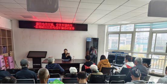讲座伊始,赵老师以“您身边有没有接到过陌生‘客服’电话?”的互动提问迅速拉近与老年听众的距离。随后,她重点讲解了包括“投资理财”陷阱、“冒充公检法”诈骗、“温情”骗局(如冒充亲友求助)以及利用AI技术“换脸”拟声、屏幕共享等新型诈骗形式。通过真实案例的还原,揭示了诈骗分子如何利用老年人信息获取渠道相对单一、注重健康、渴望关怀等心理弱点步步设套,让原本抽象的反诈知识变得生动而深刻。