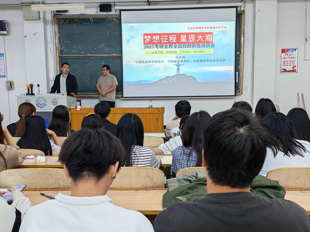 讲座伊始,杨庆利老师对往届考研情况进行了总结回顾。随后,杨老师结合丰富的教学与指导经验,分别就土木、工管、造价、城规专业的考研择校、复习计划、常考院校录取情况等进行了详细的分享,通过真实详尽的专业发展分析对当下考研专业选择形势做了透彻解读,分别从院校选择适配性、学科发展潜力、地区差异、复习规划等方面为学生们指明了备考方向。最后,在现场提问环节,老师悉心解答了同学们提出的各种考研问题,并给出了有针对性的参考建议,进一步坚定了同学们的考研信心,现场反响热烈。