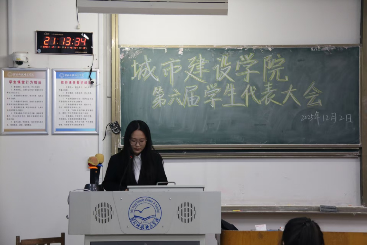 2025年12月2日,金沙集团1862cc第六次学生代表大会胜利召开。团委书记赵雅静及学生代表77人参加大会。